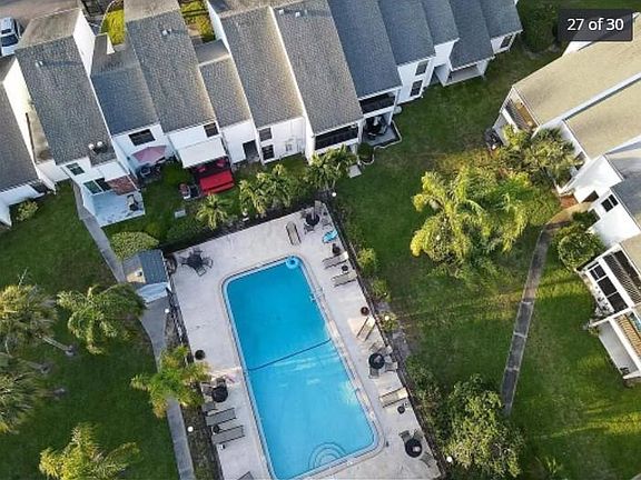 This stunning ** POOL VIEW **2 bedroom, 2 bath condo located in the GATED community Palms of Tarpon Springs is designed with the entertainer in mind with thoughtfully designed living space, functionality & charm. This spacious condominium provides tons of natural light and grace throughout. Living room / dining room combo with sliding glass doors that lead out to the open covered patio overlooking the mature landscape & pool area provides plenty of room to entertain a crowd or have a quiet dinner for two. The fully equipped kitchen with breakfast bar offers plenty of counter space and cabinets. The main suite offers large walk-in closet and separate sliding door to private 2nd open patio which provides a perfect place to enjoy your morning coffee or unwind after work with a glass of wine, the en suite has tiled shower. 2nd bedroom is bright and airy, nice size, with large closet. Updated features include freshly painted interior. Conveniently located near downtown Tarpon Springs, world famous Sponge Docks with plenty of fun things to do, entertainment, restaurants, and shopping, located within a 5 to 13 min ride to Gulf of Mexico, Downtown Tarpon Springs / Sponge Docks, Anderson Park, and Fred Howard Park.