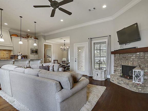 "Eligible for 100% Financing Through USDA" NORTHSHORE ELEMENTARY SCHOOL DISTRICT! Open Floor Plan with 4 bedrooms and 3 full bath split plan. You will fall in love when you walk into this bright and airy home. Beautiful brick fireplace, deep molding, beautiful lighting and rich Hickory wood floors that flow though the living room, formal dining and kitchen. The kitchen is a cook's dream, open to the rest of the home, a 5 burner gas stove, stainless appliances, tons of granite counter space and beautiful cabinetry, including a wine rack! The master has Hickory wood flooring, beautiful views of the back yard, and huge his and hers granite vanities with under mount sinks, tons of storage, a large stone and tile walk in shower with glass accents, beautifully framed deep jetted tub and a large walk-in closet that opens to the laundry room. The laundry room then opens to a large mudroom with desk and areas for backpacks and shoes. Two of the guest bedrooms share a large bathroom with a huge granite double vanity divided by tons of storage. The third bathroom is adjacent to the 3rd guest room and also has a granite counter top. Outside, is a deep covered porch with a wood ceiling and ceiling fan, beautiful private tree line and large flat back yard! And all of this is located in NW Rankin School district, convenient to Lakeland Drive, a couple of minutes from 2 Reservoir boat launches and parks, a minute from a golf course, and located in a USDA 100% financing area - no down payment required for qualified buyers! Ride by and call your favorite realtor for a showing today!!! PROFESSIONAL PICS WILL BE UP IN A COUPLE OF DAYS!