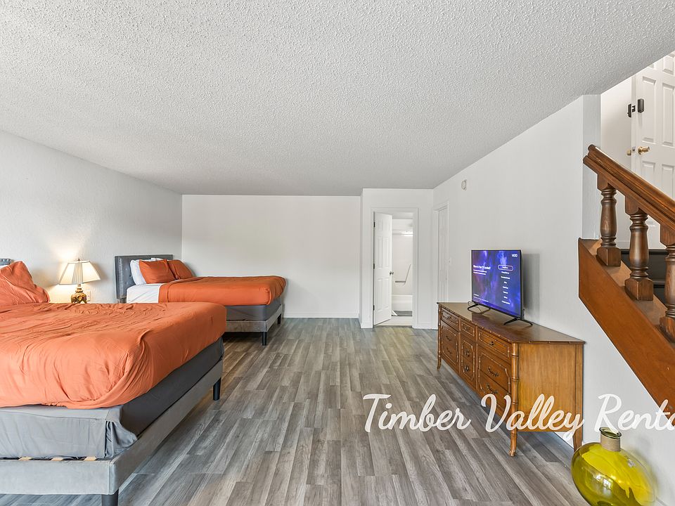 Cozy fireplaceLakefront retreatStunning views from deckFun-filled bunk roomFoosball tableArcade game