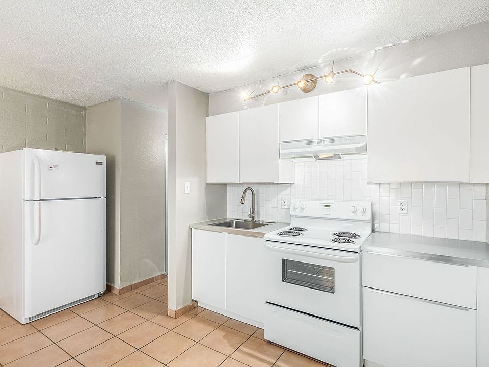 Grill and garden patioStudio apartmentPrivate parking lotBike rack within gatesHallway closetTiled bathroom wallsNew counter-tops and cabinets