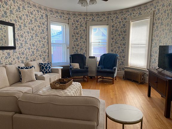 The two bedrooms have large closets, and cozy Queen-sized beds with linens. Window a/c units, and classic Hot-water Boilers.