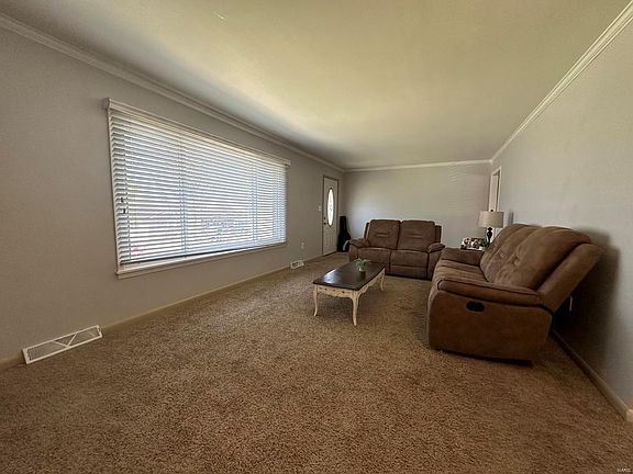 Discover your dream home in Bloomfield! This charming brick residence boasts 1725 sq ft of living space, ideal for families, offering three bedrooms & two full baths. The spacious living room accommodates L-shaped formal dining, seamlessly flowing into the kitchen. Enjoy modern amenities in the kitchen, featuring stainless steel appliances, pendant lighting, & vinyl flooring. The master bedroom showcases recent upgrades including vinyl plank flooring. Step outside to a private backyard enclosed by a nearly new wooden privacy fence. Other highlights include a vinyl-sided 20x24 detached shop with a 10x12 attached outbuilding. The concrete driveway with extra parking space is great for cars or your camper. Storm shelter off carport. Washer and dryer stays.