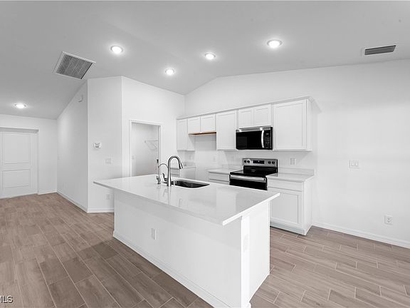 NEW CONSTRUCTION WITH WARRANTY! MOVE-IN READY!! The Cayo Costa combines open-concept living with a smart split-bedroom layout, offering three bedrooms plus a den and two bathrooms. Perfectly designed for entertaining, the main living area showcases a soaring vaulted ceiling that seamlessly connects the kitchen, dining area, and expansive Great Room. A large freestanding island provides the ideal centerpiece for both casual meals and social gatherings, while sliding glass doors extend the living space to a covered lanai for effortless indoor-outdoor living. The private Primary Suite is a true retreat, featuring two spacious walk-in closets and a well-appointed en-suite bathroom. On the opposite side of the home, two comfortable guest bedrooms share a full bath, ensuring both privacy and convenience. A versatile den with French doors offers the perfect space for a home office, study, or creative flex room. Highlights of the Cayo Costa include: Quartz countertops in kitchen and baths, designer cabinetry with soft-close doors, stainless steel kitchen appliance package, upgraded plank tile flooring in main living areas, hurricane-impact windows and doors, attached 2-car garage with direct laundry access, and more! Pictures, renderings, & virtual tour are of similar home & are used for display purposes only.