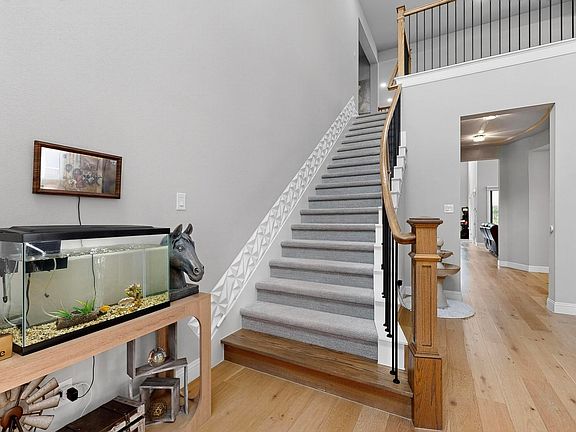 The impressive main level greets you with a dramatic 2 story foyer, sweeping staircase, and abundant natural light in every room. Enjoy a private guest suite with full bath for visitors or multi-generational living, a dedicated home office, and a flexible room to adapt to your lifestyle. The chef’s kitchen features a massive center island, upgraded counters, gas cooktop, walk-in pantry, and breakfast nook—all flowing into the vibrant, two-story family room with statement windows and an inviting fireplace.