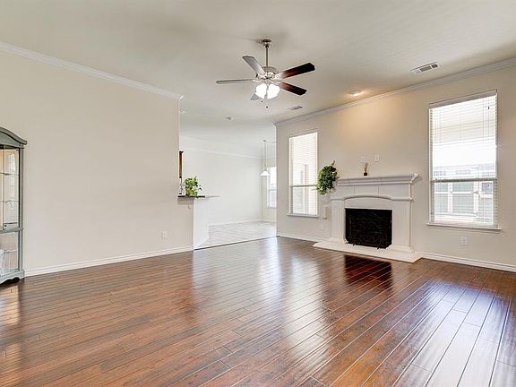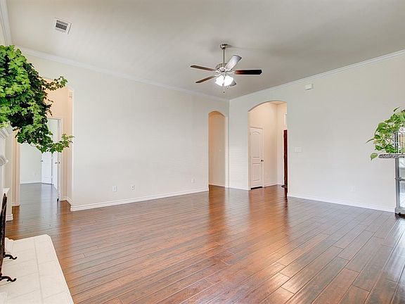 Stunning, move in ready, Cheldan Home complete with crown molding, wood floors, high ceilings and gas fireplace. Frigidaire Gallery line stainless appliances in the kitchen with granite countertops, under cabinet lighting and tiled backsplash. Butlers pantry with storage between the laundry and kitchen. 2 sets of French doors lead into the formal dining or in home office. Split bedroom floor plan has two rooms with walk in closets and carpet. Master has access to the patio and en-suite. Outside has a large covered patio that has been extended, landscaping and great 10x12 shed that was recently built! Home is within walking distance of Judy Hajek Elementary School and just minutes from great shopping and dining.