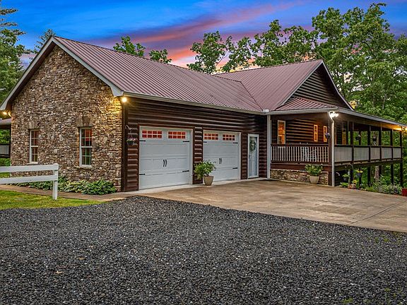 Welcome to Your Forever Home!!! This immaculately kept Log Style Lodge is situated within 6.91 gorgeous, private acres. The Peace and Serenity you feel upon driving through the lighted entry columns creates an immediate haven beyond words. The first thing you notice is the huge wraparound decks on both levels along with the beautifully landscaped lawn. Stepping inside this stunning home you're instantly surrounded by a calm as the abundance of space flows throughout this open concept floor plan. The Main level offers a very spacious living room with a vast wall of stacked stone hosting a wood burning fireplace, cathedral beamed ceilings and open to the separate Dining area and Kitchen with Island Bar. You'll also find a large pantry, Laundry Room and entry to the 2 car garage perfectly positioned off the Kitchen area for thoughtful access. Continuing through the Main level you'll notice a grand office, half bath and lovely music room. The Primary En suite offers a gas log fireplace, his & her closets and primary bathroom with a large tiled shower. The 2nd bedroom also boasts a gas log fireplace and Full Bathroom. Step onto the massive covered decks and immediately feel enveloped by the tranquility of mountain living. And we have a whole other level to discover!!! The terrace level is where you'll find another spacious living room with a gas log fireplace, 2nd Full Kitchen and a 2nd Laundry room. On one end of this level is the 3rd & 4th bedrooms with the 3rd Full bathroom. If that weren't enough, continue through to find a Media room and workout room! It just keeps getting better and better. Stepping onto the terrace level outdoor deck you're surrounded by nature. Take a stroll through the woods or just enjoy the beautiful yard. Includes a 30x40 garage on the upper portion of the property which offers RV height doors! Home also includes a whole house generator and water filtration system.