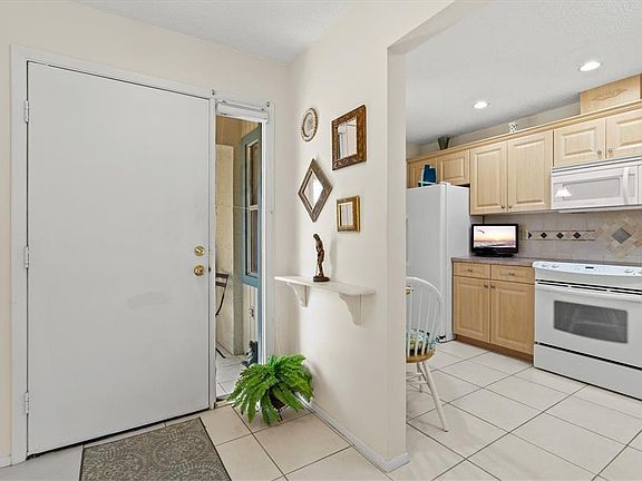 Exceptional privacyCozy dinetteVaulted ceilingsTile flooringBright spotless kitchenTile backsplashPrivate screened entry