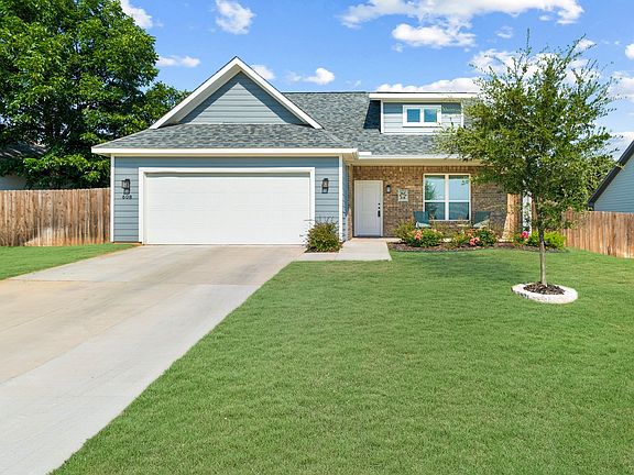 Welcome to your new turn-key home! Where life slows down and your backyard feels like a world of its own! Perfectly positioned just steps from Pojo Stadium and minutes from Main Street, this 4 bedroom, 3 bath treasure offers a blend of modern design and thoughtful touches! The open-concept layout is enhanced with bright oversized windows and anchored by a beautiful kitchen complete with granite countertops, a white tile backsplash, soft-close shaker cabinetry and, of course, stainless steel appliances! Even the picturesque window over the sink frames a serene view of your private, tree lined backyard! The luxury vinyl plank flooring flows through bright, airy spaces adding to your overall comfort in combination with having ceiling fans in every bedroom and dual thermostats! The primary suite is your new peaceful retreat with a spa-inspired ensuite featuring granite counters, dual sinks, modern lighting and a beautifully tiled shower with penny-round accents! The granite countertops grace every bathroom, the 2-car garage provides convenience and newly added pantry and custom laundry cabinetry help keep life organized! The spacious covered front porch and fully fenced backyard boast beautiful spaces for outdoor moments under the sweet Texas sky! This home offers a warm welcome to all who visit and is ready to be the backdrop for your countless memories!