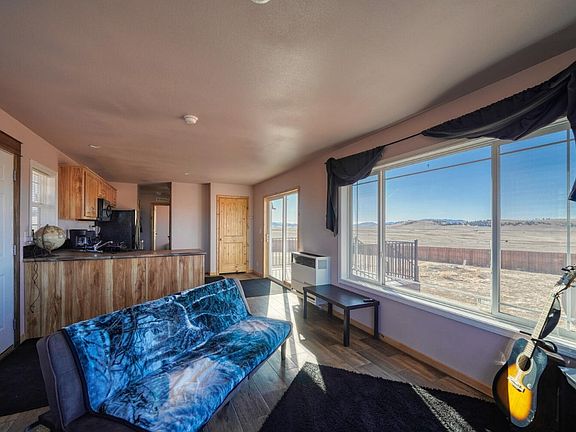 This 1 bedroom modular home is located just 3 minutes off highway 24 near Hartsel. The home features a fully fenced front and back yard plus a detached heated garage. Off-grid solar power and a backup generator. The 360 degree mountain views in every direction are truly breathtaking. Vacant lot next door is included for a total of 10 acres. High speed internet options so you can work remotely if needed. Would make a great full-time residence, vacation home, or short-term rental. No HOA.
