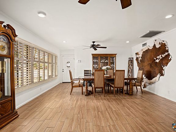 Welcome to 608 Russell Road! This beautiful home is situated on a large corner lot on a quiet street in Brawley's coveted southwest side of town. Recently remodeled, this home offers 4 bedrooms and 3 bathrooms, including a private Master Suite with 2 walk-in closets and a stunning Master Bath. The kitchen is built for entertaining with a large island, double ovens, separate range and cabinets aplenty, as well as a dry bar and a wine fridge. The massive family room adorned with vaulted ceilings and a fireplace is perfect for hosting and family gatherings. The dining room also compliments the open floor plan. The backyard is complete with a covered porch and area to barbeque and enjoy the pool on a hot summer day. You'll also find room for your pets to roam. The spacious north side yard is designed for additional pull through parking and includes secure storage closets for all your extra stuff. Russell Road is lined with beautiful mature trees and adorable and unique homes; a neighborhood that is ideal for walking and family bike rides. Schedule an appointment today to view your move-in ready home!