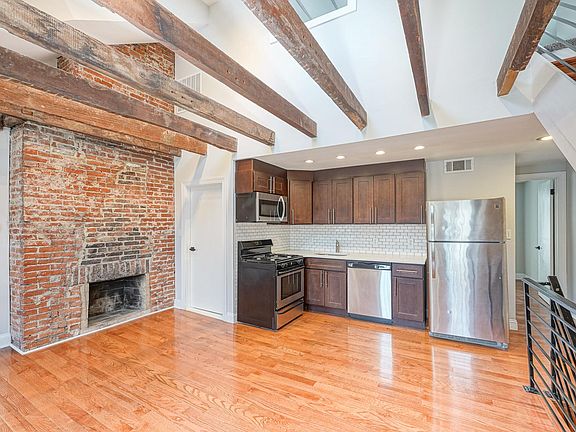 Welcome to 608 S 3rd St Apt 3, one of the most unique rental properties in all of Queen Village! This beautiful third floor walk up bi-level unit is ready for rent immediately. This home has it all... plenty of space and closets, in unit washer/dryer, hardwood floors, Central A/C and TONS of original character! Enter the unit to be greeted by an inviting foyer with space to hang coats and extra storage. Head upstairs to a large and bright open living room with original rustic wooden beams. The open concept living space boasts a kitchen that has been updated with wood cabinets, newer stainless steel appliances, dishwasher & garbage disposal. Just off the living room is the first of two full bathrooms that has been completely renovated from top to bottom. Just past the kitchen is the stackable washer/dryer, then on to a large bedroom with its own fully renovated en suite bathroom. Head upstairs to a large, loft style second bedroom. Tons of natural light pouring into the apartment from all angles. Convenient and exciting city living with Ox Coffee, Philly Bagels, and Cry Baby Pasta just steps from your front door. Located upstairs from neighborhood staple Rockerhead Salon, with easy access to shopping, nightlife, and public transportation.