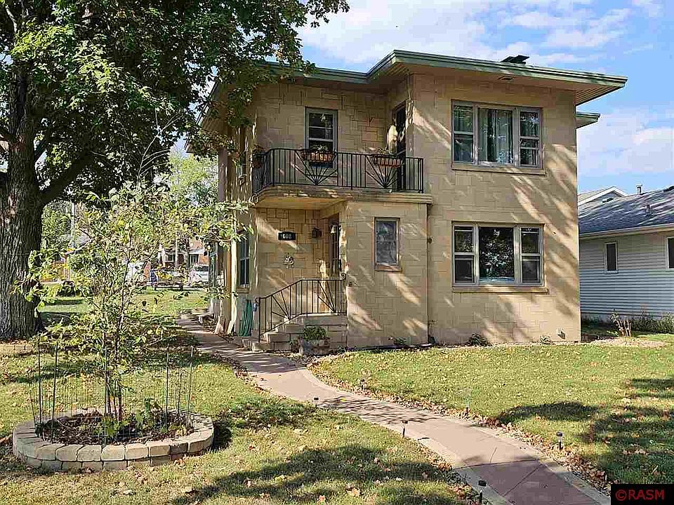 Unique Artstone home in New Ulm with an abundance of classic charm and innovative updates. The 4+ bedroom, 3 bath home features restored wood trim throughout and both hardwood and slate tile floors. Dining room is complete with built-in cabinets, and the living room boasts an Artstone fireplace. New quartzite counters, sink and appliances can be found in the kitchen, equipped with a natural gas hookup. The basement boasts a unique brew room and newly installed ½ bath as well as a workshop and family space complete with a second fireplace. Hot water heat, coupled with in-floor heating in several rooms keeps the home very comfortable in the winter months with efficiency. Two upper balconies and a three-season porch extend the home’s livable space when the weather is balmy. The home is complete with upgraded water supply lines to the interior fixtures, sanitary sewer, radon mitigation system, sump pump, and electrical system. New Andersen Architectural Series windows and roof installed in 2008. Outside you will enjoy beautiful landscaping and gardens throughout the full city lot. A newly installed cement patio and fully decked outdoor kitchen are ready for entertaining and family cook-outs. The extra long single car garage leaves plenty of room for bikes or outdoor equipment. The garden shed, porch and potting area extending from behind the garage provide additional storage and useful spaces for your outdoor activities. Home is located across the street from beautiful 4-block New Ulm German Park, with dog park, walking/bike paths and sledding hill, and is walking distance from downtown shopping and entertainment.