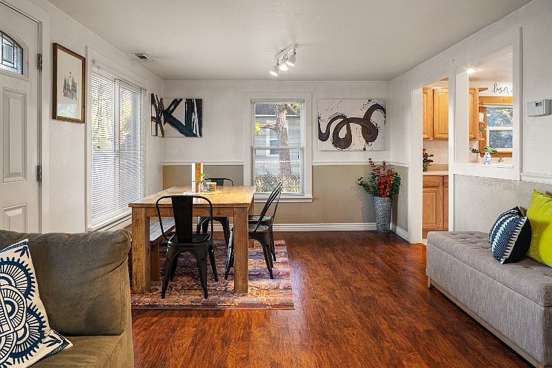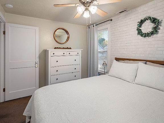 The home is very close to grocery stores and restaurants, as well as multiple hospitals for those of you who work in healthcare. The bungalow has two bedrooms and one bathroom; each bedroom has a queen-sized bed. The kitchen is full-sized and is fully stocked. The living room is cozy with a smart-TV and wi-fi included. The Bungalow has a lovely, quiet backyard with a pergola, fire pit, and chairs for your use. The yard is fully fenced with a driveway gate. Large detached two-car garage is available for your use. The neighborhood is very safe and the neighbors are friendly!