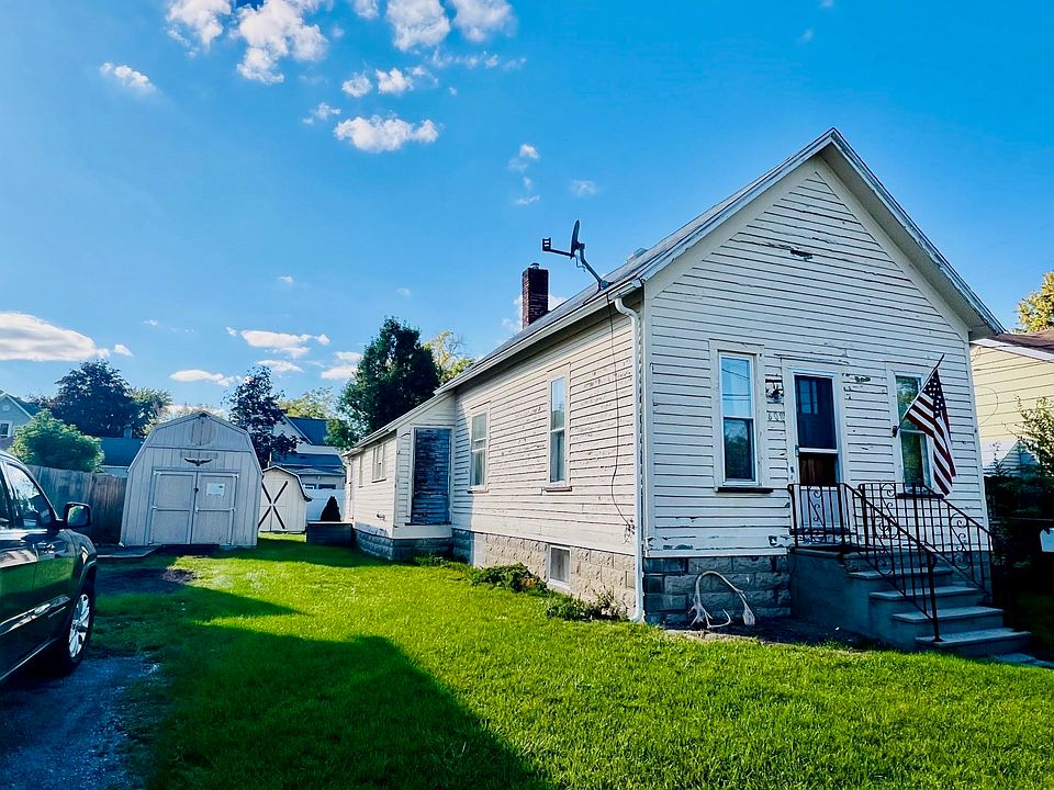 Modest 2 bedroom home with a semi open layout, eat in kitchen, basement, exterior storage sheds and partially fenced yard. Great investment opportunity. Home in need of some repairs and priced accordingly. Cash or possible high down conventional terms only.