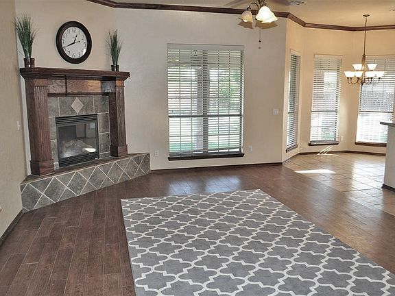 SPACIOUS OPEN 3 BED 2 BATH W/STUDY AND TONS OF STORAGE. LARGE OPEN FAMILY RM W/GAS FIREPLACE INSERT, CEILING FAN AND TILE WOOD FLOORING. DINING WITH BAY WINDOWS, OPEN TO KITCHEN W/GAS STOVE, LOTS OF CABINETS AND COUNTER SPACE, BREAKFAST BAR, MICROWAVE, DISHWAHSER, SELF CLEANING OVEN AND FLAMICA COUNTER TOPS. STUDY HAS GLASS FRENCH DOORS AND GORGEIOUS BUILT IN BOOK SHELVES AND DESK. MASTER IS LARGE AND HAS A PATIO ACCESS, CEILING FAN, CARPET FULL BATH W/SEPERATE STOOL AREA, SHOWER, JACUZZI TUB, DOUBLE SINKS & VANITY & WALK IN CLOSET. BEDROOMS ARE LARGE WITH FANS AND DOUBLE OPEN CLOSETS. TILE & WOOD TILE FLOORS THROUGHOUT, WHOLE WALL STORAGE IN HALL BATH & WOOD CROWN MOLDING & 10'CEILINGS THROUGHOUT. LAUNDRY HAS STORAGEA AND FOLDING TABLE. BIG BACK YARD WITH PLAYSET AND POND & WRAP AROUND COVERED PORCH. VERY MANICURED, QUIET NEIGHBORHOOD. CLOSE TO I-35, I-44, SHOPPING, ENTERTAINMENT AND SCHOOLS. THIS HOME HAS IT ALL!!!! A MUST SEE!!!