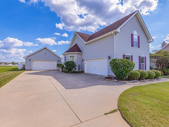 Welcome to 608 Saddlebred Drive in the desirable Saddlehorn community of Pelzer, SC! It is a horse lovers dream with horses grazing just feet away. This stunning 4 bedroom, 3 bath home, lovingly maintained by its original owner, offers nearly 2,900 square feet of beautifully finished living space, plus an additional 388 square feet of unfinished space that can be used for storage or easily finished to suit your needs. The thoughtful floor plan features a spacious primary suite on the main level, complete with an en-suite bath and walk-in closet, and 2 other bedrooms downstairs, while the open living and dining areas flow seamlessly into the kitchen, creating a warm and inviting environment for both everyday living and entertaining. Upstairs you’ll find an additional bedroom and full bathroom, providing comfortable accommodations for family and guests alike. The outdoor living spaces are just as impressive as the interior. Situated on a generous .60-acre fenced lot, the property includes a sparkling saltwater in-ground pool with a non-slip deck, perfect for summer gatherings and relaxation. Overlooking the pool is a charming screened porch, where you can enjoy morning coffee or evening sunsets in comfort connected to an oversized deck for outdoor grilling. A dedicated outbuilding offers convenient storage for pool supplies, while the yard provides plenty of room for pets, gardening, or play. Car enthusiasts and hobbyists will appreciate the abundance of garage space, as this property features both a two-car attached garage and a separate two-car detached garage, providing space for vehicles, a workshop, or additional storage. With its combination of thoughtful design, outdoor amenities, and meticulous care, this home truly offers the best of Saddlehorn living. Conveniently located near Greenville and Simpsonville, and zoned for Ellen Woodside Elementary, Woodmont Middle, and Woodmont High, 608 Saddlebred Drive delivers not only comfort and space but also a lifestyle of convenience and enjoyment