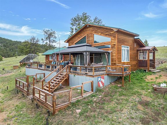 Welcome to your mountain retreat! Nestled on 5 private acres, this cabin combines breathtaking panoramic views, peaceful seclusion, and proven short-term rental success on Airbnb. Powered by owned solar panels, the home is both energy-efficient and cost-effective. Inside, an inviting open layout features a spacious great room with soaring ceilings, expansive windows, and 8-foot sliding glass doors that flood the space with natural light. Gorgeous natural wood floors and a kitchen with stone countertops create a warm, cozy atmosphere. Step outside to a large covered deck with a gazebo—the perfect spot for morning coffee, grilling, wildlife watching, or stargazing under clear mountain skies. Property highlights include: oversized carport, heated 220v workshop, ample parking for RVs, trailers, and boats, interior paint & newer washer, built walkway connecting deck to workshop, recent fire mitigation for peace of mind. Prime location for outdoor adventure: 30 minutes to Cripple Creek, 40 minutes to 11 Mile Reservoir, 45 minutes to Woodland Park, 60 minutes to Colorado Springs, 2 hours to Denver. Surrounded by meadows, forests, and abundant wildlife—including elk, deer, and countless bird species—this property is a true Colorado gem. With no HOA, it offers the freedom to live, play, or rent on your terms.