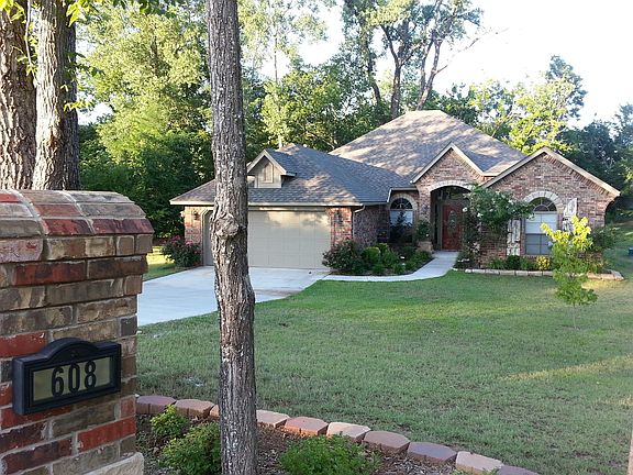 This beautiful cul-de-sac home sits on 1.05 acres with tons of mature trees, and even fruit trees in the back. Step in side and be welcomed by the large living space with corner fireplace and tons of natural lighting. A formal dining sits just off the entrance. The kitchen overlooking the living space, provides plenty of cabinetry, ample granite countertop space and a huge walk-in pantry with automatic lights. The master suite is sure to be a retreat of it's own: tray ceiling, large windows, private access to patio, and a large ensuite with walk-in shower, double vanity, jetted tub and incredible walk-in closet. Two additional spacious bedrooms are situated on either end of the guest bath and hallway with tons of storage space. The spacious covered patio gives you the perfect place to relax while looking over the large backyard where you will find an in ground storm shelter as well as storage shed.