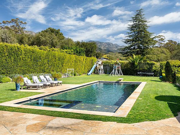 Tucked away on one of Montecito's most sought-after streets, 608 Stone Meadow Lane offers an exquisite blend of privacy, charm, and effortless living. This beautifully remodeled single-level ranch-style home sits just off prestigious Picacho Lane, moments from the Upper Village and the acclaimed Montecito Union School. The residence features four bedrooms and three and a half bathrooms, all designed with an exceptional layout that maximizes comfort and flow. Recent upgrades include a new roof, a new HVAC system, and an updated electrical system enhancing modern comfort, efficiency, and peace of mind. Skylights and French doors flood the interiors with natural light, seamlessly connecting indoor and outdoor spaces. At the heart of the home, the bright and airy gourmet kitchen is bathed in sunlight from an impressive skylight. Custom cabinetry, top-tier appliances, and an intimate breakfast nook create an inviting space for both casual dining and refined entertaining. The formal dining room exudes charm with its beamed ceiling and French doors opening to serene outdoor areas. Set on a usable flat lot in this coveted location, the property feels expansive and versatile, offering a sense of openness that sets it apart. The grounds feature a custom pool, jacuzzi, bocce court, and sport court, framed by lush landscaping, mature privacy hedges, vibrant garden beds, and an array of fruit trees. Lovely mountain views provide a serene backdrop to both the front and backyards, creating a tranquil retreat in the heart of Montecito.