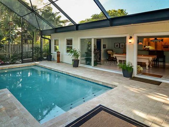 Active with contract. Located on Valencia Rd, one of Venice Island's most desirable locations, this renovated and redecorated 4 bedroom, plus den, 3 bath, 2 car garage, plus in-ground heated saltwater pool is move-in ready. The walk in feels like a Coastal Living Magazine spread. The front door is etched with leaded glass. Living room has lots of windows that let the Florida sunshine in. Hardwood flooring abounds in many of the rooms. This home has an open flowing floor plan. One of the guest rooms features an in-suite bath, including granite surface vanities and upgraded tile with pebble floor shower. Perfect for guests. Open kitchen centrally located to all of the main areas featuring solid counters, large island, breakfast bar and lots of counter space. Master suite is large enough for a spacious sitting area, his and hers walk in closets, and master bath with relaxing garden tub, high solid wood vanity with dual sinks, and walk in shower with 2 shower heads. Separate den/office is off of the family room with great views of the pool and lush landscaping. Family/dining room is off the kitchen with 6 large sliding glass doors opening up to the pool and backyard, making it perfect for entertaining guests and family. Backyard is low maintenance and fenced for privacy. Paver patio off living room makes a nice area to relax with a cup of coffee in the morning or sip on wine after a busy day at the beach. Beach access is a block and 1/2 away or 2 blocks to Venice Island's popular public Gulf beaches.