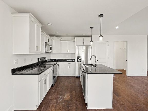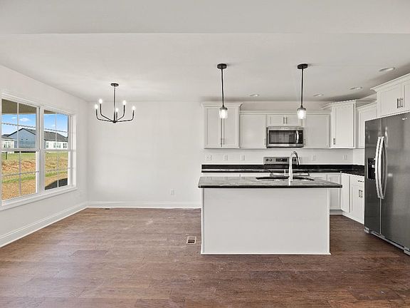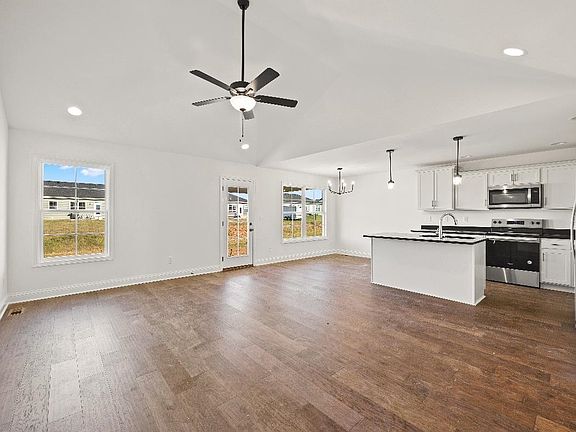 Kitchen islandVaulted ceilingGranite countertopsLvp and carpeted flooring