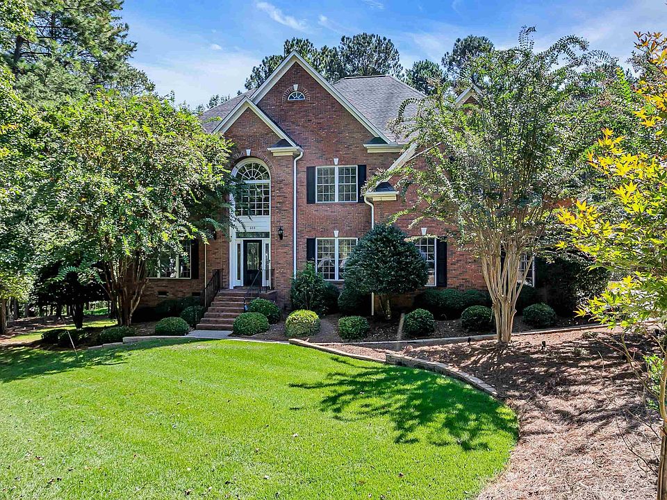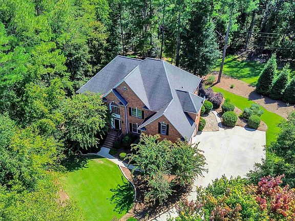 Positioned at the end of a tranquil cul-de-sac within a 24/7 guarded, gated community, this home is surrounded by mature trees, serene ponds, and abundant wildlife ensuring peaceful, country-club living. Step into a grand two-story foyer featuring soaring ceilings and gleaming hardwood floors. A formal sitting room and elegant dining room flank the entrance, while a generously proportioned great room with a gas fireplace fills the home with warmth and natural light. The chef’s kitchen boasts granite countertops, a gas cooktop, double ovens, and custom cabinetry. It opens onto a breakfast area that leads to a spacious deck perfect for morning coffee or entertaining in the fresh air. A guest suite with a full bath on the main level adds a convenient, flexible living space. Upstairs features three large bedrooms including a Jack-and-Jill bath plus a sumptuous master suite. The master retreat impresses with vaulted ceilings, a luxurious en-suite with double vanities, a jetted garden tub, walk-in shower, and a dressing room sized closet. The fully finished lower level houses a private office/bedroom with custom built-ins, a recreation/family room with its own fireplace, a bedroom with a full bath, and direct walk-out access to a patio featuring a new hot tub, an ideal sanctuary relaxation. Recent improvements elevate both functionality and style: fresh interior paint, new carpeting, outdoor lighting, deck upgrades, a tankless hot water heater, and meticulous landscaping including enhanced drainage and selective tree removal. Enjoy access to elite Carolina Country Club amenities: clubhouse, restaurant and bar, Olympic-sized pool with cabanas, fitness center, tennis courts, walking trails, lakes for fishing, and beautifully manicured golf course. This stately home delivers luxury, privacy, and sophistication spanning nearly 4,700 sq ft with 6 bedrooms and 4.5 baths on a sprawling 1.28-acre lot. Perfect for multigenerational living, entertaining, or those seeking a serene retreat with upscale amenities close to everyday comforts. PROFESSIONAL PHOTOS AVAILABLE 9/9/25