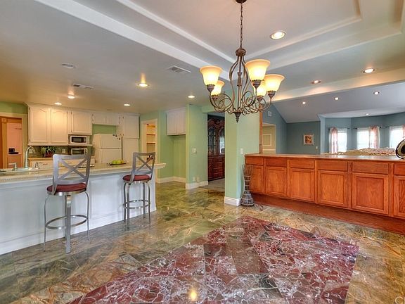 Charming updated home is situated on large 26,730 sq. ft. gated lot with excellent potential! Beautiful entry leads to an open floor plan that offers a spacious living room with fireplace. Open kitchen with a large breakfast area and breakfast bar, adjacent formal dining room with abundant cabinetry. This home offers 5 bedrooms and 5 bathrooms with approx. 5,080 sq. ft. living, including the master suite with master bath featuring separate shower, spa tub and double sinks. Two large bedroom suites located at the back of the property with a separate entrance, can accommodate for more family or hosting guests. Large backyard with two fish ponds, built-in BBQ area and two covered patios, perfect for entertaining. Additional amenities include, high ceilings, individual laundry room, electric gate, and security system with surveillance cameras. Plenty of parking with a 4-car / RV garage of approx. 1,208 sq.ft. and extra parking along the gated driveway. Conveniently located to shopping, supermarkets and schools!