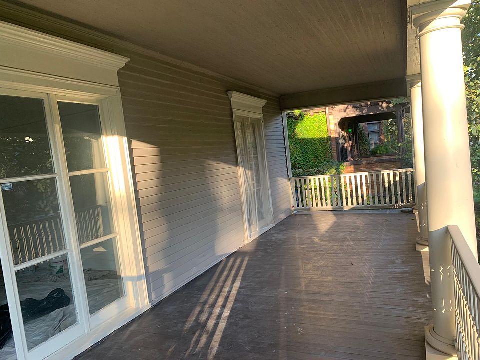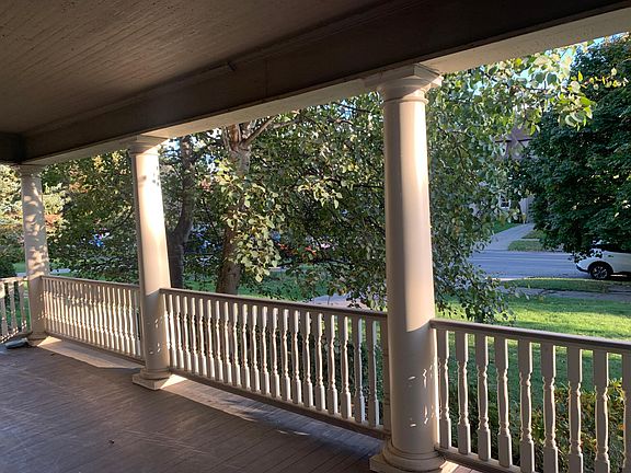 Fully renovated unit with full, private access to front porch. Freshly finished hardwood floors. Heat included. New kitchen has granite counters, full backplash, high-end new appliances including gas range. Sink has integrated cutting board and dish drain rack. Eat in kitchen with built in bookcase off kitchen. Ample closets (3) throughout. Mid century modern bathroom with reglazed tub - accessible from both bedroom and from kitchen. Non working, but lovely fireplace. Private front porch that is 10' x30' and accessible from french doors in both living room and bedroom. Owner pays water, heat. Tenant pays gas for range, cable and electric.