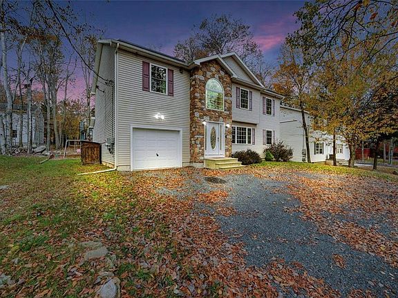 Delightful Lake View Excellence! Pocono Investment Home Offering 4 Bedrooms, 2 1/2 Baths, Spacious Garage w/ 3 Tesla Powerwall Chargers & Energy Efficient Solar Panels. Versatile Sun-Lit Floor Plan Showcasing Expansive Family Room w/ Stone-Faced Propane Fireplace & Lake Views. Upgraded Eat-In Kitchen Has Granite Counters, Tile Backsplash, Stainless Steel Appliances, Bar Top Seating & Dining Area Showcasing Sliding Glass Doors To Entertaining Deck Overlooks Backyard Oasis. Large Primary Bedroom Suite Has Walk-In Closet & Full Bath w/ Tiled Jacuzzi Tub, Double Sinks & Separate Shower. Vacation Community Offering Many Amenities Including 2 Lakes, 4 Pools, Playgrounds, Boating, Beach, Mini Golf & More. Public Water & Sewer & Taxes Totaling $6,281/Year. Let's Kick-Start Your 2025 Portfolio!