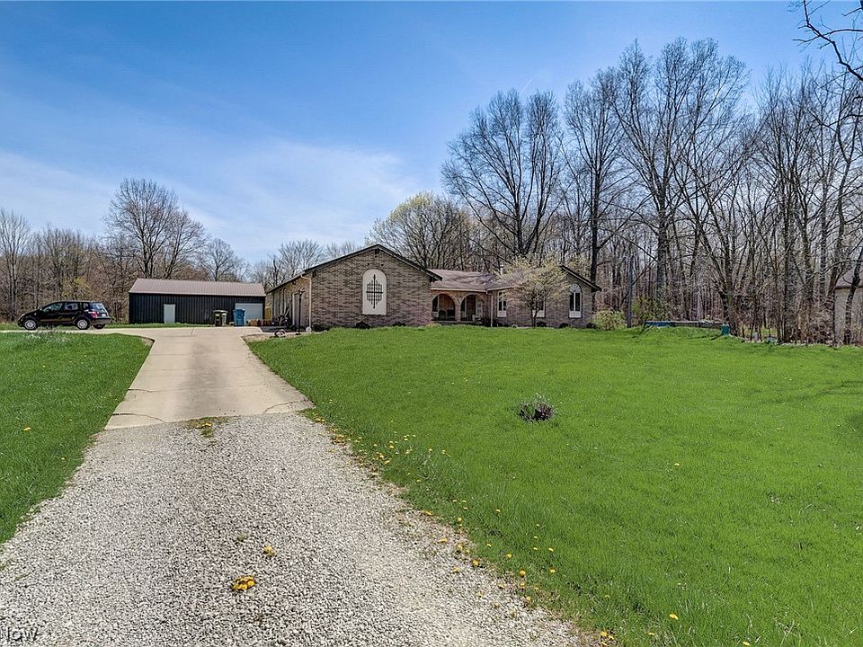 Convenience meets functionality with a first-floor laundry room, simplifying daily chores. Outside, the fenced-in yard offers security and privacy, perfect for pets or outdoor gatherings. Stroll through your own private oasis, complete with a tranquil pond, perfect for fishing or simply enjoying the peaceful ambiance. A highlight of this property is the versatile pole barn, offering endless possibilities for hobbies, storage, or even a workshop. Escape the hustle and bustle of city life and embrace the tranquility of country living in this exquisite brick ranch home. Don't miss your chance to make this idyllic retreat your own! Schedule your showing today.