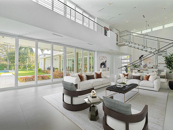 Nestled on nearly an acre in Northeast Pinecrest, this exceptional custom-built estate showcases meticulous craftsmanship and modern elegance. Soaring ceilings and dramatic floor-to-ceiling windows fill the home with natural light, highlighting an open layout ideal for entertaining. The chef’s kitchen features Viking and Sub-Zero appliances, and all ensuite bedrooms are thoughtfully designed. A private elevator, Crestron smart home system, whole-house generator, and three-car garage enhance daily living. Expansive terraces, manicured landscaping, and a resort-style pool create a serene backdrop, all within walking distance of top schools.