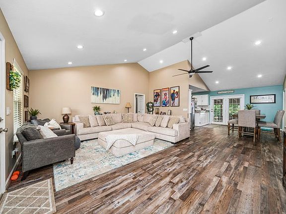 Charming home on 1.1 acres in a quiet neighborhood. This home features 3 bedrooms & 2 baths which incudes a spacious primary bedroom and walk in closet. Enjoy a screened in covered porch that borders a creek with a partially fenced in area. This home has other features such as; cathedral ceilings, covered front porch, walk in pantry, ample storage, attached 4 car garage, plus an additional RV garage. There is an additional well on property, but house is on utility . This one will not last!