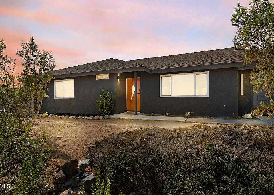 Tucked away in Joshua Tree's sought-after Friendly Hills neighborhood, 60815 Natoma Trail is a beautifully remodeled 2-bedroom, 2-bathroom home that blends modern style with desert charm. Built in 1986 and impeccably updated, it features an open-concept living space with designer tile, fresh paint, newer HVAC, and stylish fixtures throughout. The statement kitchen showcases a retro refrigerator, gas stove, dishwasher, and spacious breakfast bar, while french doors open to a covered patio overlooking an expansive backyard with a pergola--perfect for outdoor dining and entertaining. Situated on a 0.42-acre lot with room to add a hot tub, pool, or additional amenities, the property also includes an attached two-car garage offering convenience or potential for expansion. Other notable features include a charming built-in wet bar in the main living space and a generously sized primary suite with an en-suite bath. Just minutes from the Joshua Tree National Park entrance and local favorites like Crossroads Cafe, Country Kitchen, The Dez, and the weekly farmers market, this thoughtfully designed home would make an ideal primary residence, vacation retreat, or investment property.