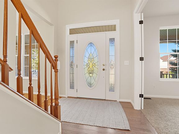Welcome to 6082 Spring Lake Dr- a bright & spacious 2-story home w/ 4 bedrooms & over 3,300 sq ft of living space offering modern updates throughout. Clean & freshly painted w/new flooring & updated light fixtures in several rooms, the home also features new quartz countertops & oven/range (2025), new roof (Nov 2024), and furnace (2023). Other highlights include 9' ceilings, 42'' cabinets, a corner gas fireplace, formal dining room, office with French doors & built-ins, a bonus room, and a spacious primary suite with tray ceiling & walk-in closet. A welcoming wraparound porch, fenced yard, and large patio sit on a quiet cul-de-sac close to shopping, restaurants & the YMCA. Well maintained. No HOA. The full unfinished basement with bath rough-in provides excellent storage space and future possibilities.