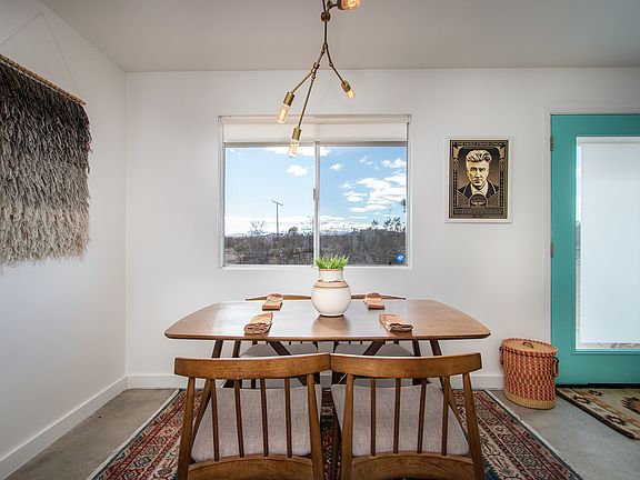Two bedroom, one bath home on 2.5 acres in the Yucca Mesa neighborhood. Home comes fully furnished with streaming TV, mini split heating/cooling, fully stocked kitchen, tons of closet space and in-home washer and dryer. Home was remodeled in 2018, but there are some vintage touches including original cabinets and counters. Home is on an extremely peaceful lot away from bright lights and full view of stars. Starlink internet will keep you connected at high speeds for remote workers. Utilities to be paid by tenant: trash, water, power, propane, internet. Pets considered with a pet deposit.