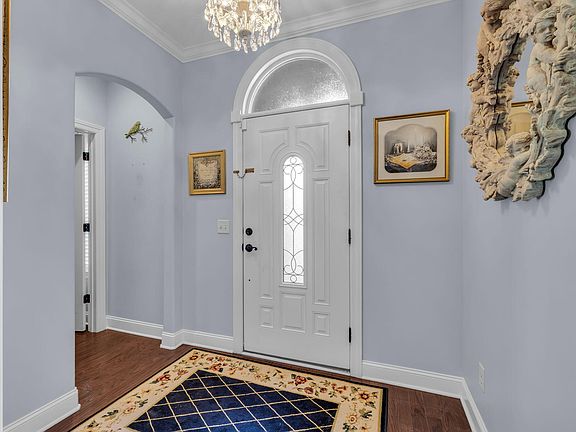 Step inside to an open and inviting floor plan featuring hardwood floors on the main level and a spacious great room with a cozy gas log fireplace, perfect for relaxing or entertaining. The gourmet kitchen boasts granite countertops, stylish tile backsplash, under-cabinet lighting, and sleek stainless-steel appliances, while the oversized laundry room, conveniently located beside the kitchen, adds both functionality and ease to your daily routine. The master suite on the main level includes a tile shower with rain and standard shower heads, a luxurious bath, and a custom walk-in closet. A staircase highlighting architectural details leads upstairs to three additional bedrooms, a Jack-and-Jill bath, and a versatile room that could serve as a large bonus space. Additional storage includes a finished walk-out storage room and a pull-down attic.