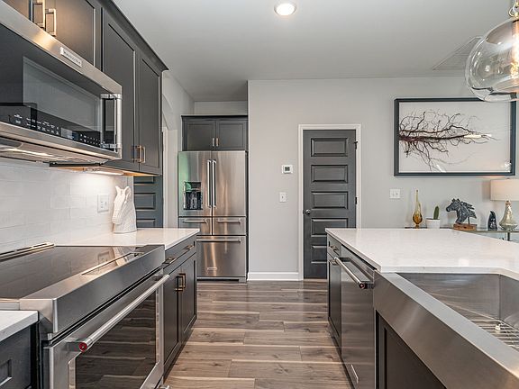 Introducing a stunning corner unit townhome in Hendersonville's coveted Waterford Village. This meticulously maintained residence boasts recessed lighting throughout, illuminating its spacious interiors. Culinary enthusiasts will appreciate the KitchenAid appliances, including an induction stove top. Designer lighting adds a touch of elegance to the kitchen, complementing its stylish features. Enjoy the luxury of LVT flooring throughout, offering both style and practicality. Recently landscaped front and backyards create inviting outdoor spaces. Custom-built primary closet provide ample storage, while the primary bathroom features a tiled shower for added elegance. Cozy up by the floor-to-ceiling electric stone fireplace in the living area. Entertain guests with ease thanks to the addition of a wet bar in the dining area. Quartz counters and black painted doors add a touch of sophistication. Complete with custom blinds throughout, this home combines timeless charm with modern comforts.