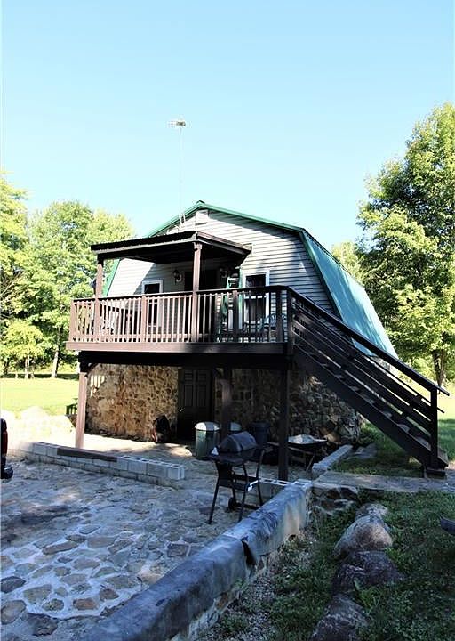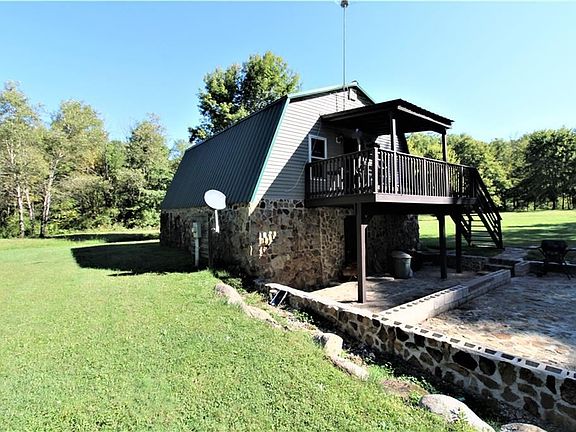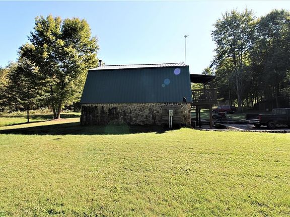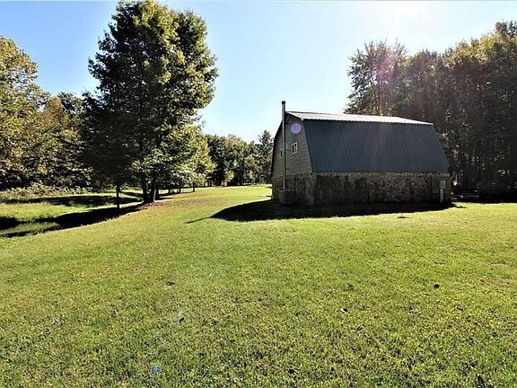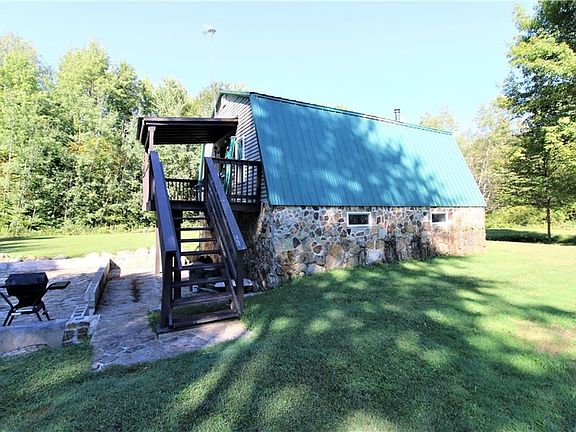 Anyone say Privacy and Retreat LIVING on a vast 9.17 acres This 1 bedroom custom built "Stone Cottage/Cabin Style" Home offers tranquility at its Best! Metal Roof. Built in 2011, could turn first level into more Bedrooms if desired, or leave as Recreational area/or for the Hobbyist! Second Floor entails the vaulted living room with walk out deck area to enjoy the peace and nature..also the kitchen includes all the appliances, Bedroom and Bathroom with Laundry (includes washer & electric dryer) 2013 electric furnace with 2013 air conditioning unit, wood stove in first floor, sump pump, electric hot water tank, water softener and whole house filter was installed when home was built in 2011. A few outbuildings, Robust Septic System was installed for a 3 bedroom home if wanted to add on or build another home. creek runs along side north side of property (a smaller pond too) Very economical living, windstream internet is in area-make an appointment today before this one is gone!