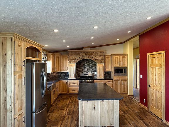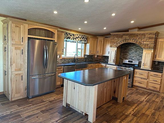 House ready to be moved 2160 sq ft 3 bedroom 2 1/2 bathroom with vaulted ceilings large master bedroom with walk in closet and custom shower propane fireplace in living room stainless steel appliances including stove, refridgerator, microwave, dishwasher kitchen with hickory cabinets and island with large pantry electric 50 gallon water heater propane furnace air conditioner can be included spacious laundry room/mud room with 1/2 bath solid wood interior doors and trim package concrete skirting and cement board siding