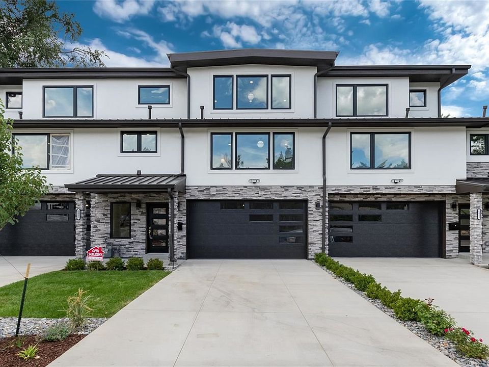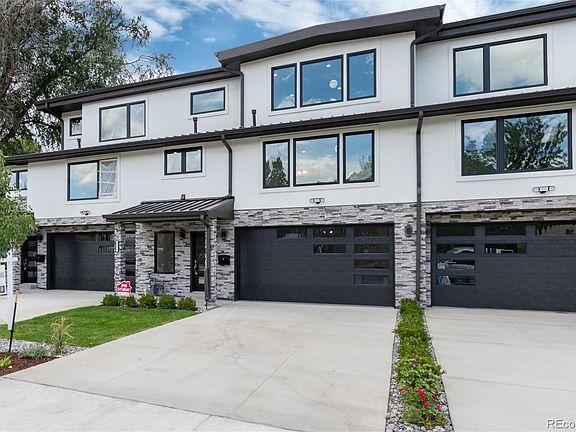 Don't miss this amazing townhome! This new built is a short stroll away to Littleton Downtown Main Street with its amazing shops, restaurants, breweries, and light rail station. This unit has a modern floor plan, abundant natural light, flat finish walls, two furnaces and two A/C units, a radon mitigation system and a spacious feel. The main living area features a beautiful family room with a fireplace and sliding doors opening to a large backyard and a pretty patio surrounded by plants and flowers. The family room faces the kitchen fully equipped with stainless steel appliances, quartz countertops, an island with ample storage. A dining room with a lot of natural light and a powder room complete the main floor. Stunning white oak hardwood floorings throughout the main floor. The second floor includes two sunny secondary bedrooms with large closets; one bathroom with double vanity, bathtub, and ample storage; As well as a primary bedroom, with walk-in closet and en-suite bathroom with soaking tub and walk-in shower; a laundry room equipped with washer, dryer and utility sink is conveniently located next to the primary bedroom. A second primary suite, with walk-in closet and an en-suite bathroom is located on the third floor. As well as a flex space ideal for a work from home space or second family room. This room is fully equipped with mini bar and opens directly onto a spacious deck with mountain views perfect to enjoy the incredible sunsets. The basement is fully finished with a vast family room, closets, and a full bathroom. Front yard and back yard are professionally landscaped with sprinklers, new sod and drip system for flowers and bushes. An attached two-car garage equipped with an electric vehicle charging outlet and a spacious driveway complete the property. An investor might be interested in purchasing all three units of the triplex to live in one and rent the other two. Elegant exterior with stucco, decorative stone, metal roof and black windows.