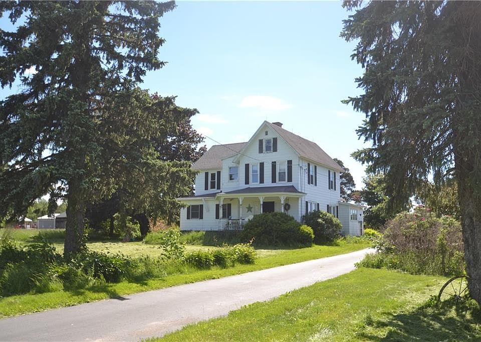 3 ACRES surround this turn of the century 6 bedroom 2 FULL BATH charming colonial! 2 LARGE BARNS !Palace sized living room w/ full wall of chestnut built in cupboards!! Gorgeous natural woodwork! Gone with the Wind style staircase ! French doors leading to 1st floor master ste!! Formal dining room with oak floors! 2 Covered Porches! 1st floor den/office ! Side mudroom w/ huge walk in closet! 2nd floor laundry with newer front load appliances! Spacious bedrooms ! NEWER Thermopane windows !! NEWER Furnace !! House roof 2013 ( except upper north slope) ! Minutes from SODUS POINT! Great setting ! Great House ! Great Price!