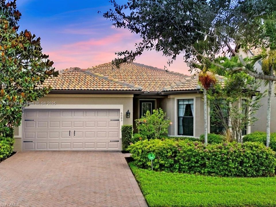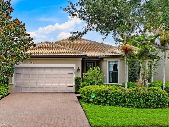 Enjoy the Del Webb Naples lifestyle in this inviting Abbeyville model, perfectly located just half a mile from the clubhouse, golf, pools, and pickleball. This 2-bedroom plus den home with French doors, a sunroom, and extended lanai offers 1,784 sq. ft. of comfort and style. The open kitchen features staggered cabinets and a pantry, flowing into the great room ideal for entertaining after a day of activities. Split bedrooms provide privacy, while the oversized laundry with walk-in storage, drop zone off the garage, keyless entry, smart home security, and Generlink generator transfer switch add convenience and peace of mind. Surrounded by mature landscaping and move-in ready, this home invites you to live, play, and relax in a fun and social 55+ community filled with excitement every day!
