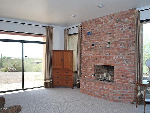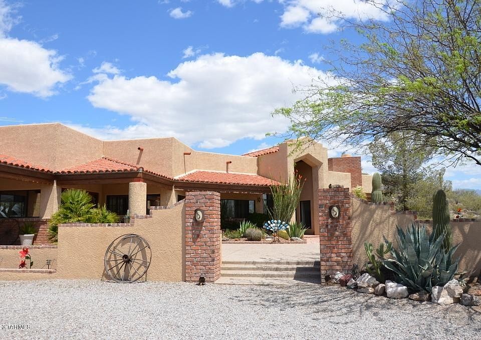 For more information on this property, contact the Listing Agent, Madeline Friedman at (520) 296-1956 or TucsonHomeFinder@AOL.com. Hilltop Custom home on almost 7 acres. Newly paved drive winds its way up the hillside to reach this outstanding contemporary ranch. Home is sited to take advantage of 360 degree views. Great room is the heart of this home: Energy efficient Wells fireplace; island kitchen with Jenn-Air & KitchenAid appliances, oak cabinetry, gorgeous granite countertops, spacious breakfast area, wet bar, and lots of built-ins, make the perfect setting for relaxation or entertaining. Pebble Tec pool, wide porch and spacious patio with lush landscaping create an oasis ambiance. Home features dedicated covered RV storage, plus 3-car garage. Don't miss separate storage shed in dog run. Amenities: dual cooling, central vac, plantation shutters, covered patio off most rooms.