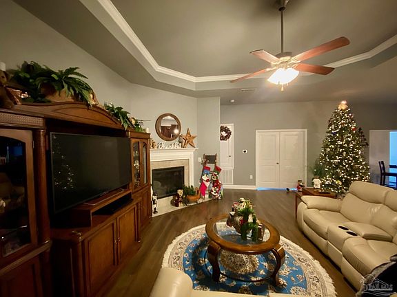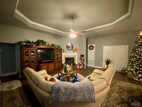 Gorgeous POOL HOME with a gazebo! Stunning & spacious, this home features an open kitchen and living room with electric fireplace and tray ceiling, a formal dining room, an office, a Florida room, large owner's suite with tray ceiling, double vanity and garden tub, separate shower and closets. Neutral paint, tile and wood look flooring throughout. Custom closets and pantry. French doors added, as well as a new AC unit inside in 2023 and outside in 2024. Outside, enjoy the pool and gazebo on hot summer days. Yard has a privacy fence, a new gate and a sprinkler system. The front porch is perfect for rocking chairs. The solar panels with Tesla battery yield lower electric bills. Painted and skirted back yard shed. Grilling gazebo. Close to Whiting Field with a finished garage floor. This immaculate home has so much to offer inside and out, come and see for yourself.