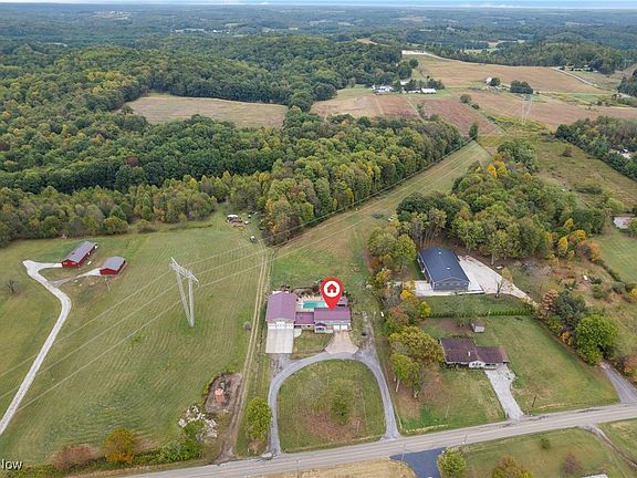 Totally Remodeled 3 Bedroom Contemporary Home with Attached 40'x60' Heated Garage and Inground Pool near Malvern! Here's a level 5-acre property with open land and woods for hunting or enjoying the outdoors. Plentiful wildlife to enjoy or perhaps have a horse or livestock. No zoning here. The 2740 sq ft 2-story home has been totally updated within the past few years and features granite counters, heated wood-grain tile floors, amazing baths with walk-in showers, raised living room, 2-car attached garage and the 2021 finished, attached 40x60 bldg. with 2-10' overhead doors and 2-14' overhead drive through doors suitable for RV's, etc. The concrete area behind the home with pool has a covered outdoor kitchen / bar and hot tub where you can entertain guests in privacy. The house and building are built so they require little exterior maintenance. Located just 20 minutes to Canton or Alliance on a county road. If you're searching for a home with living space and a building for your hobbies and toys, this property has the amenities. Call to schedule your viewing today!