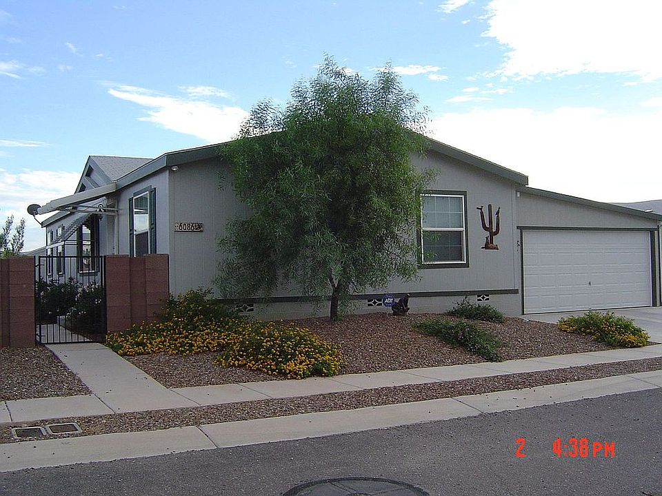 You'll love this manufactured home in a quiet gated community, complete with community pool and more. Split 3 bed, 2 bath, floor plan. Master bath has dual sinks, garden tub and separate shower. Kitchen boasts solid wood cabinets and walk in pantry. Home has central vacuum, security system and exterior cctv cameras Upgraded insulation keeps you cool in the summer and warm in the winter. This home even has window awnings to block out the sun. Insulated storage shed . Orange tree in backyard. All appliances stay. Ash tree pomegranate bush new exterior paint