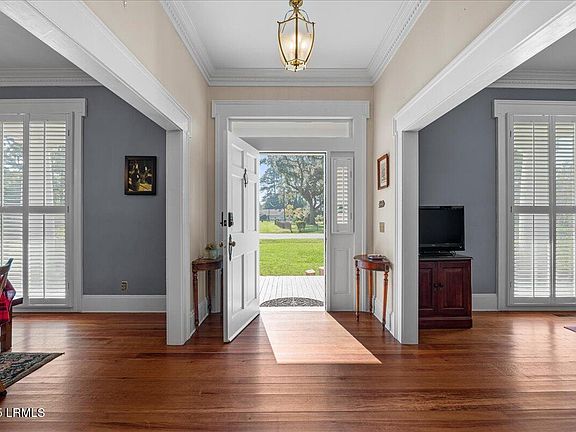 Experience true Lowcountry living at 6086 Vaux Road, a 4-bedroom, 3.5-bath elevated home on nearly 1 acre along Habersham Creek, just off of Broad River. Enjoy an open layout with high ceilings, pine floors, a cozy fireplace in the family room, and a screened-in back porch for relaxing. Outside, a private deep-water dock with boat lift offers about 8 ft of depth at low tide, perfect for boating and fishing. Conveniently located near Parris Island, Broad River boat landing, The Sands beach, Port Royal, and downtown Beaufort.
