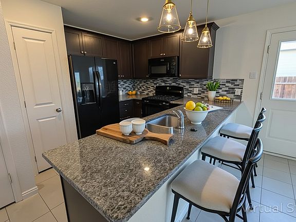 The gourmet kitchen is a true showstopper, complete with a stylish backsplash, large center island, and plenty of counter space — ready for your favorite bar stools and morning coffee moments.