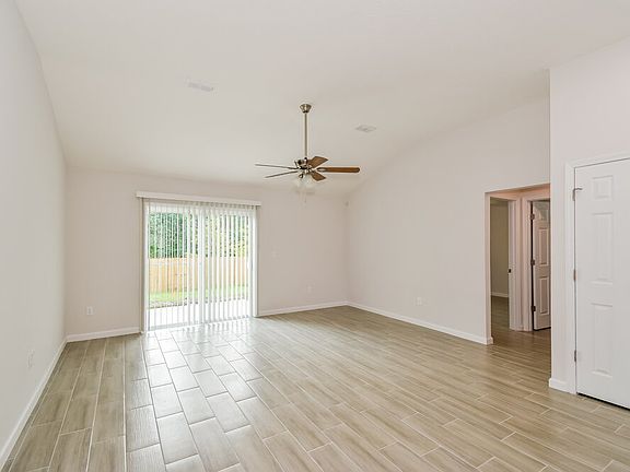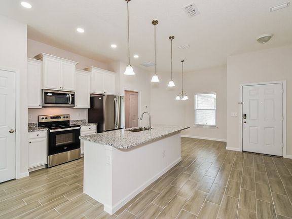 See this beautiful Jacksonville, FL rental home with four bedrooms and two bathrooms. The main bedroom suite includes conveniences like a ceiling fan for comfort and an en suite bathroom. At the center of the open floor plan, you'll find a modern kitchen, complete with a pantry, stainless steel appliances, and granite countertops. The island has pendant lights above it, and the vinyl plank flooring extends into the dining room. Enjoy meals under an attractive chandelier with views of the front yard. The living room is perfect for entertaining with a high ceiling and a lighted ceiling fan, and the sliding glass doors open up to a patio. Large windows allow lots of natural sunlight. Tour this property today.