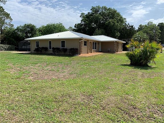 Welcome to the perfect home for a quarantine! This beautiful home is located in a wonderful subdivision that is far enough away to be very quiet and close enough to be very convenient. The property is a half acre like most homes in the subdivision and that leaves you room for everything. This home has been thoroughly updated and needs nothing more than groceries. It features a nearly new metal roof, brand new central air-conditioning and all new stainless kitchen appliances. There is no carpeting in this home whatsoever, matching ceramic tile is everywhere except the front family room where it is laminate. No steps inside this home at all! The center, large kitchen design is amazing and allows visibility and conversation between the family room, the dining room and the living room. Excellent natural lighting really makes it feel light and airy. It is a split bedroom plan and the master is on the back corner of the house overlooking the pool area. The master bath is large with separate soaking tub and stand up shower as well as a big walk-in closet. Just down the hall from the master is a cool office nook which allows you to stay organized and not give up a bedroom to do it. The best feature is probably outside, just walk through the double patio doors to a huge covered lanai with attached screen enclosure over your beautiful blue pool. This is Florida living at its finest and will quickly become your favorite room in the house! This is a large enclosure with gorgeous paver blocks and room for more people than you would want to have over! More than half of the huge backyard is fenced with a doggie door to the pool area. To the left is a gravel parking area for a boat and RV. The family that is lucky enough to live in this home probably won't change their plans much after the quarantine is over! Come see why! Make an appointment for your private tour today.